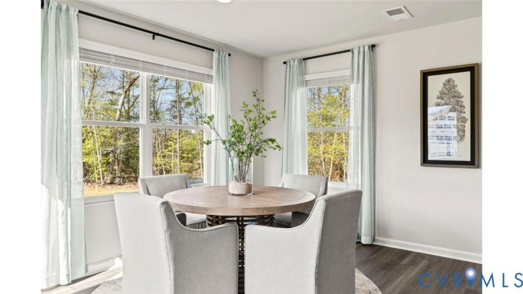 Welcome to Chappell Creek in Prince George, VA! This established community offers spacious homesites, open floorplans, and a family-friendly atmosphere just minutes from Fort Lee, Petersburg, and Richmond. Welcome to The Pine, a stunning 1,953 sq ft open-concept home that perfectly blends comfort and functionality. This beautifully designed home features four spacious bedrooms, two and a half bathrooms, and a two-car garage, offering ample space for your family to grow and thrive. As you enter, you'll be greeted by a welcoming foyer with a convenient powder room and coat closet. The open floor plan allows for seamless flow between the living room, casual dining area, and kitchen, creating the ideal space for family gatherings and entertaining. The spacious kitchen is a highlight, with a large island offering plenty of seating, an impressive corner pantry, and stainless steel appliances. It overlooks the living and dining areas, and a sliding glass door provides easy access to the backyard. Upstairs, the owner's suite offers a private bath with a double bowl vanity and two oversized walk-in closets, creating a luxurious retreat. The three additional bedrooms are generously sized, providing ample privacy, and share access to the second full bathroom. The laundry room is conveniently located on the second floor, along with an extra hallway closet that could serve as additional storage or a linen closet. The Pine offers the perfect blend of spacious living, modern design, and practical features, making it the ideal choice for families seeking comfort and functionality in a home.